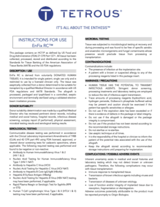 Tetrous manufacturing is through Origin Biologics.  Below are links to Origin Biologics’ Tissue Bank certifications.